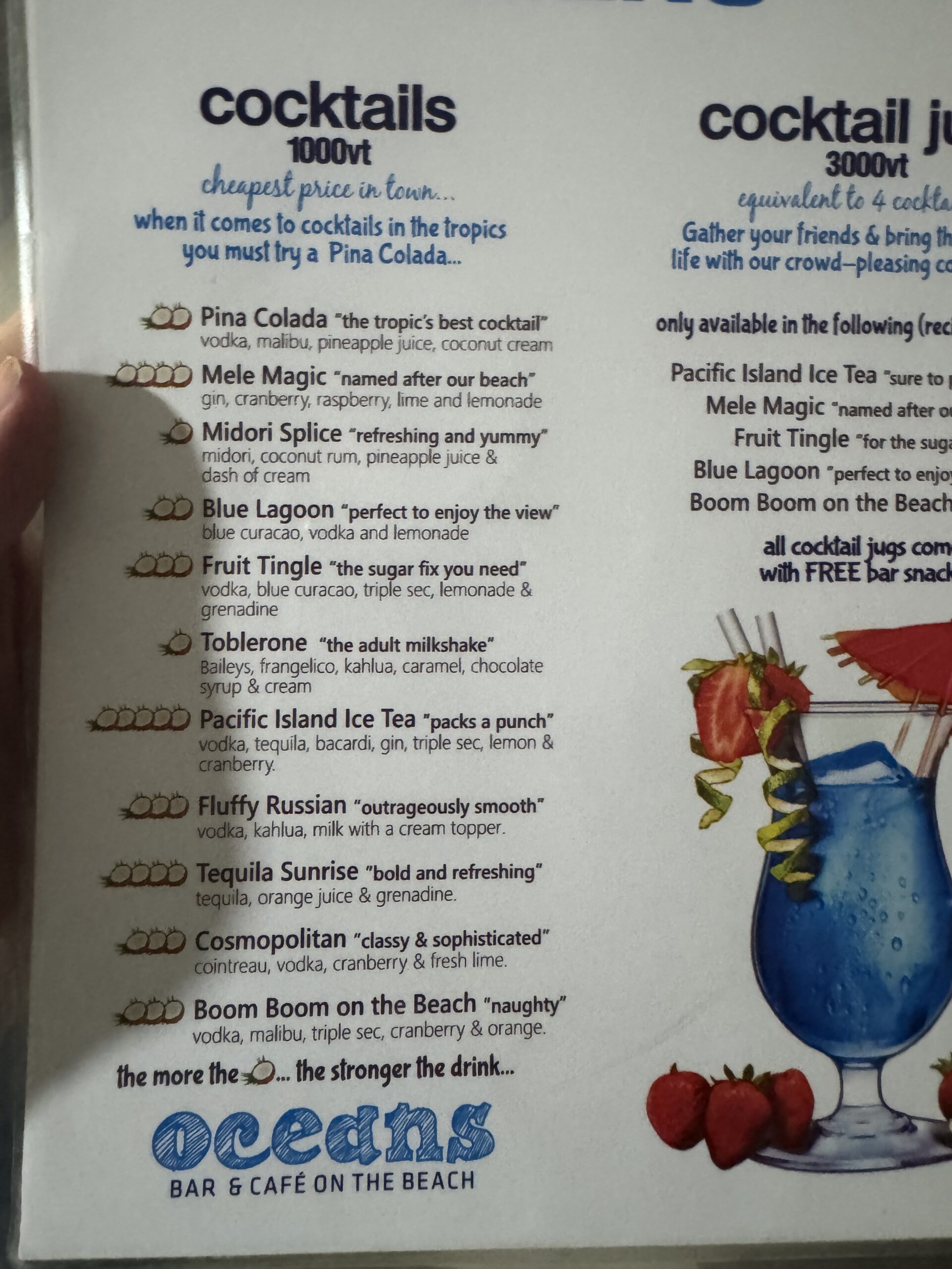 After the fire show I thought I would get a cocktail at the beach bar as I hadn’t got to try the Toblerone yet. I decided to get the Nambawan (Kahlua, Baileys, Malibu and fresh coconut cream) it sounded delicious but was thoroughly disappointing. I didn’t enjoy it at all. I can’t quite put my finger on it but I feel like it just didn’t seem to have a lot of flavour. After that it was back to bed.